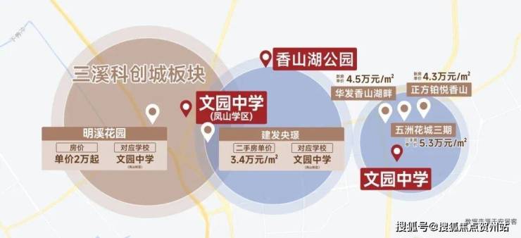 香山湖半径3公里,香山湖→梅溪→三溪,4万+→3万+→2万,房价梯度明显;