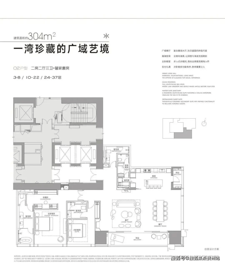 304㎡2房2厅3卫+家政套间:景观最好顶奢2房: