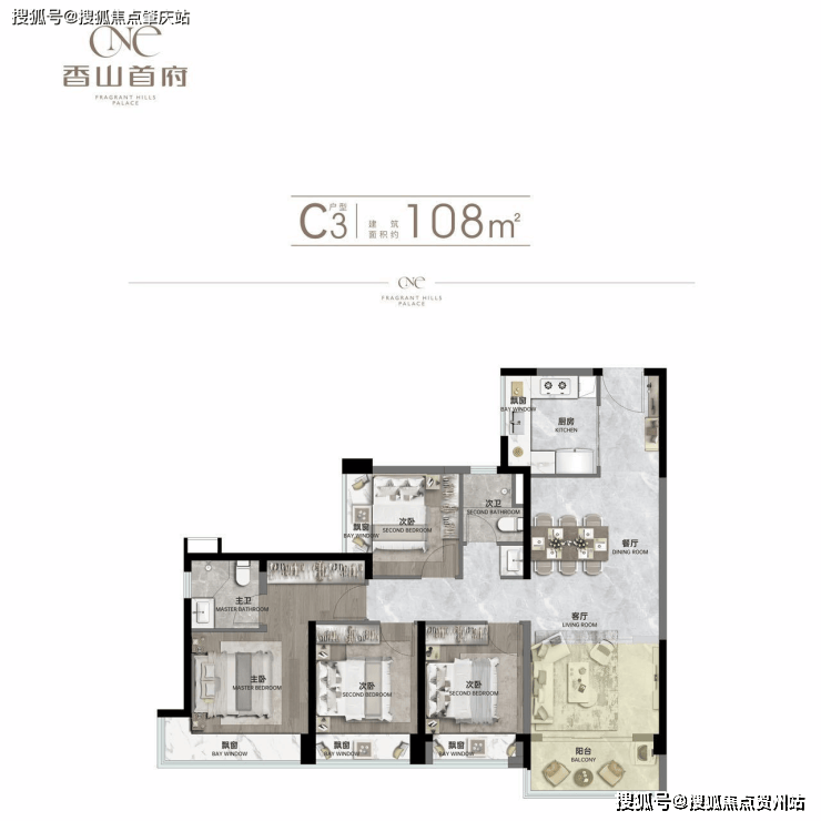 建面约108㎡四房两厅两卫