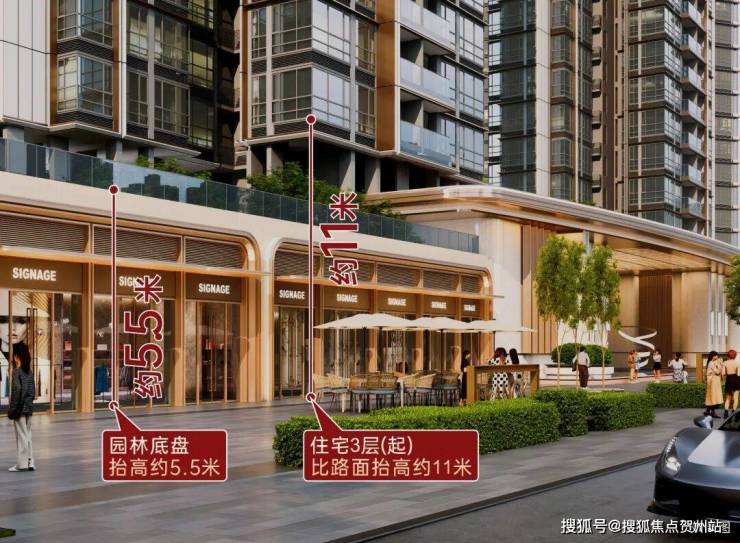 “抬高约5.5米园林底盘+约68米奢阔门庭,从喧嚣城市进入静谧住区。