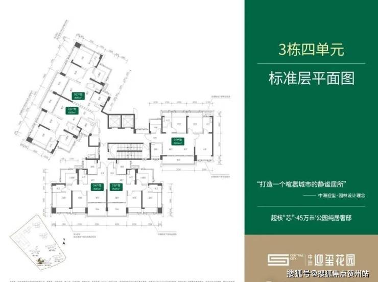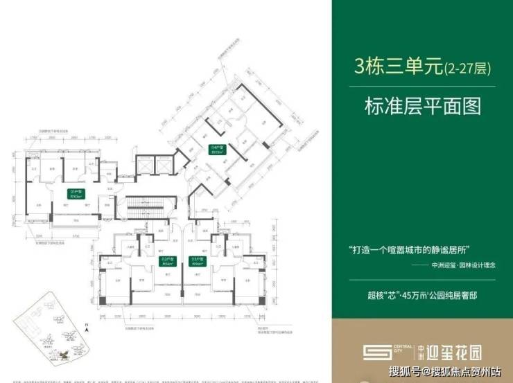 3栋2单元:总层高48层3梯4户,01.04户型115平,02.03户型96平
