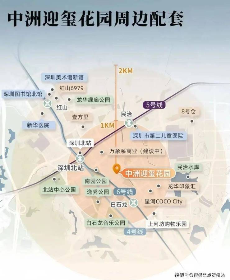 项目原中洲黄金台,定名为中洲迎玺花园,位于龙华民治街道,西北毗邻中海珑悦理家园,东北毗邻超核中心润府。