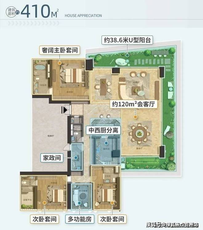 中山108·天銮建面约410㎡摩天大平层户型的解读,我们一起窥探一下,专属塔尖人士的云端顶奢生活。