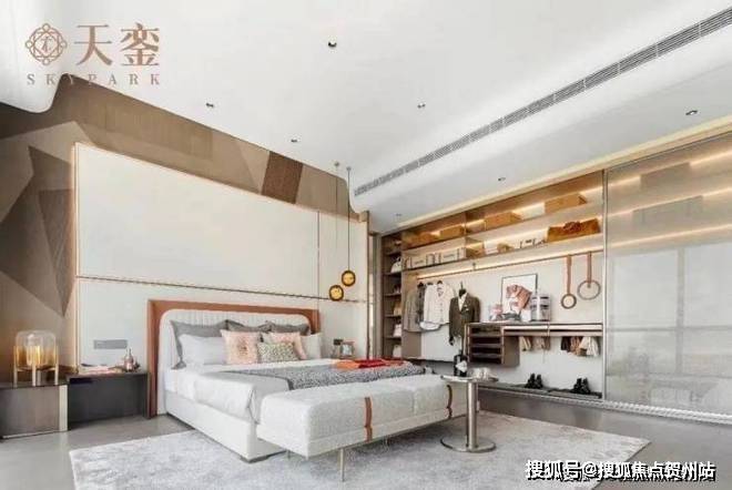 中山108·天銮约410㎡户型主卧,空间尺度堪比五星级酒店套房。