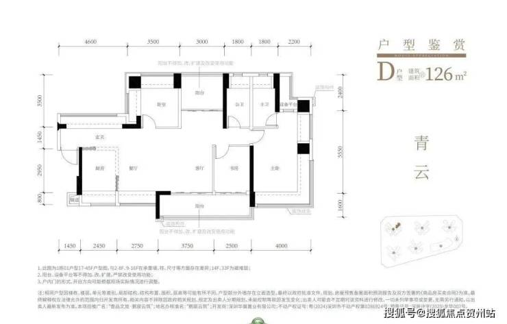 126㎡的4房2厅2卫,设计的是横厅南北通透格局,进门赠送约4.2㎡的入户玄关,客餐厅6.35米开间,4个卧室分别做到了主卧21.37㎡/次卧10.22㎡/次卧10.19㎡/次卧7.39㎡(实测面积,去掉墙体),主卧+1个次卧270°飘窗,客厅连接次卧出6.3米长大阳台,L型厨房, 得房率约103.5%(包含赠送),阳台主朝东南向。