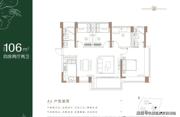 106㎡的4房2厅2卫,折后总价285-312万/套,单价2.67-2.93万/㎡。