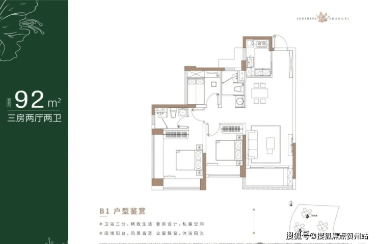 92㎡的3房2厅2卫,折后总价263-273万/套,单价2.59-2.96万/㎡。