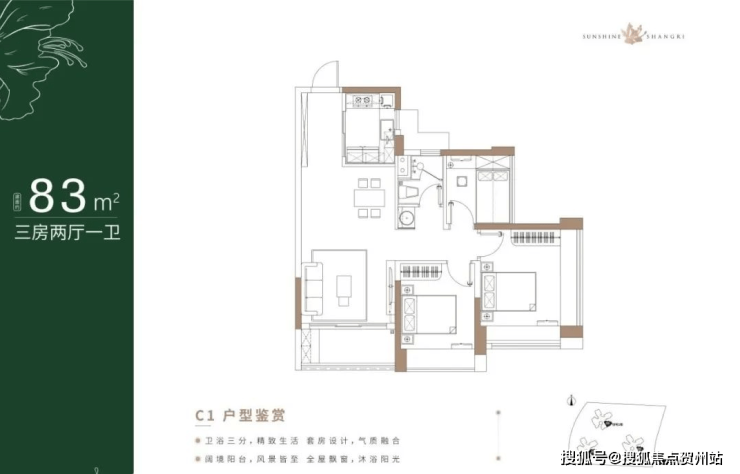 83㎡的3房2厅1卫,折后总价235-245万/套,单价2.84-2.96万/㎡。