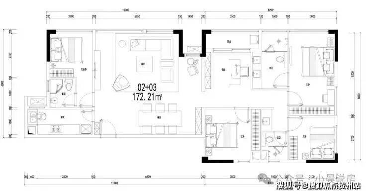 C02+03户型:约172㎡4+1房,阔尺空间藏风华,高区无遮视野揽星河