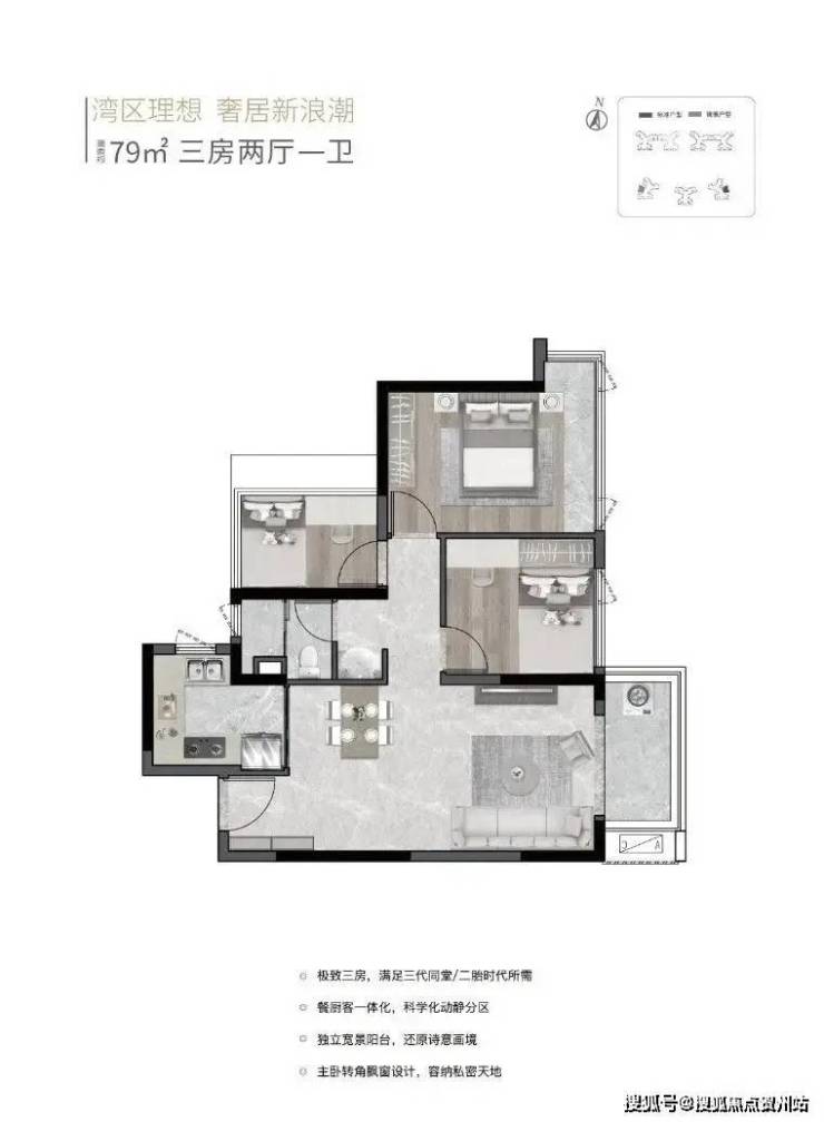 高得房率:来自深圳的爆款户型,79㎡3房1卫、89㎡3房2卫、105㎡4房2卫,全周期户型,90%以上超高得房率。