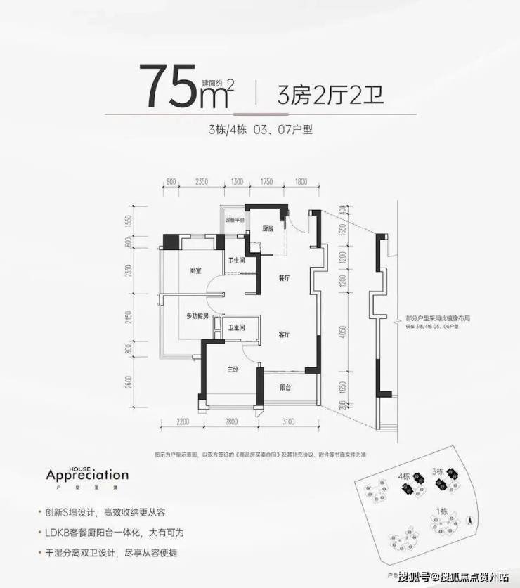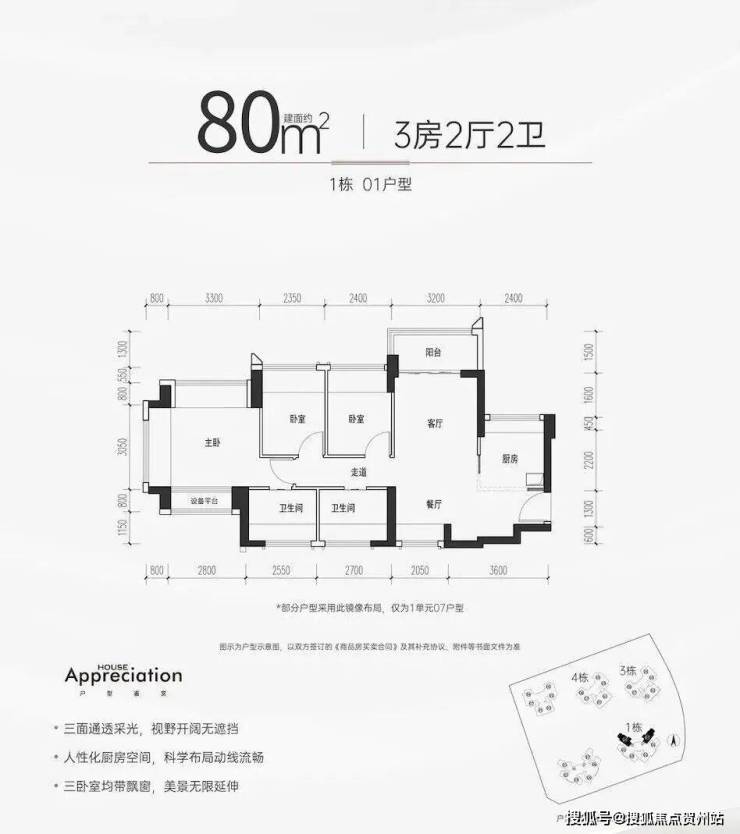 82㎡的3房2厅2卫,竖厅户型,折后总价287-312万,单价3.5-3.83万/㎡。