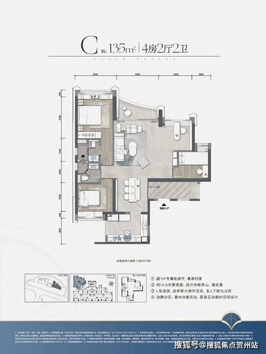 户型与得房率:主力户型为 111-139㎡三至四房一线海景户型,均带精装交付,适配高端改善与海景需求群体。户型亮点鲜明:111㎡正南向一线海景三房,6 米景观阳台,主卧套间设计,全明格局;123㎡南向海景三房,双阳台设计,主卧带 270° 环幕观景窗;135㎡一线山海景四房,户型方正,部分带 270° 环幕阳台;139㎡东边位楼王,双海景视野,专梯入户,奢华主卧套间 + 步入式衣帽间。得房率方面,官方未公开确切数据,市场专业评估实际得房率约 78%-82%,四梯五户设计保障公共空间宽敞,部分户型通过阳台、飘窗等赠送面积,实际使用面积可大于建筑面积。高清户型图可通过售楼处(400-079-2015)