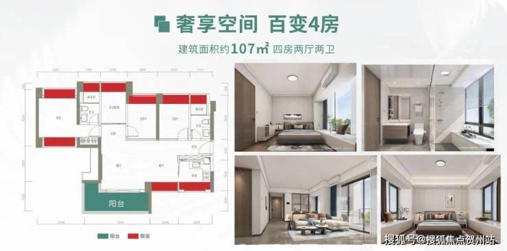 设计的是横厅南北通透格局,客餐厅一体化,4个卧室分别做到了3.25米/2.55米/2.4米/2.15米的宽度,主卧南北通透,长5.2米的L型大阳台,U型厨房,卫生间干湿分离,得房率:79.96%(不含赠送),阳台主朝西南或东南向。