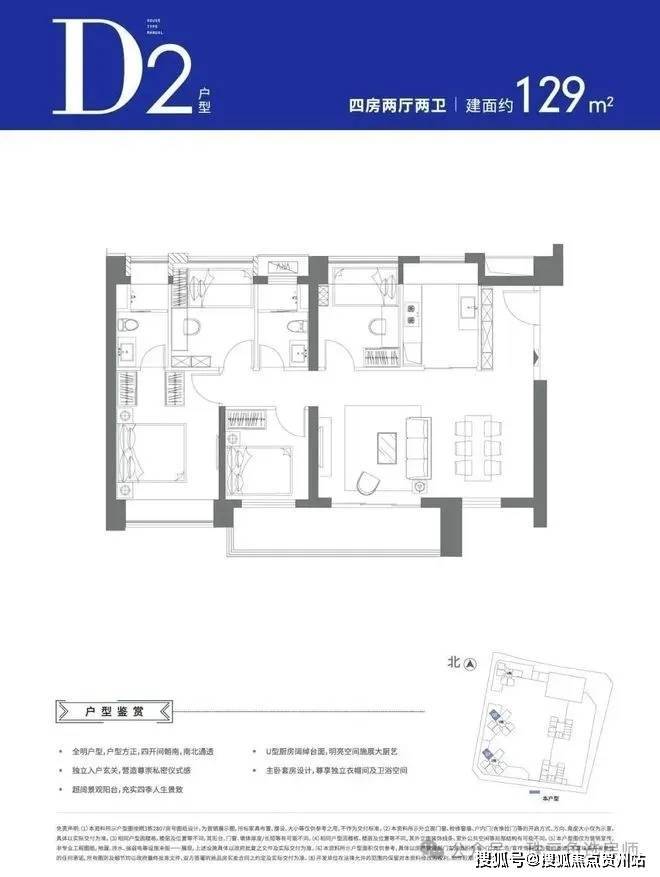 建面约129㎡ 四房两厅两卫 D1、D2户型