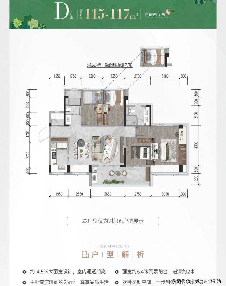 117㎡4房2卫 总价550-640万/套,单价4.7-5.5万/㎡;