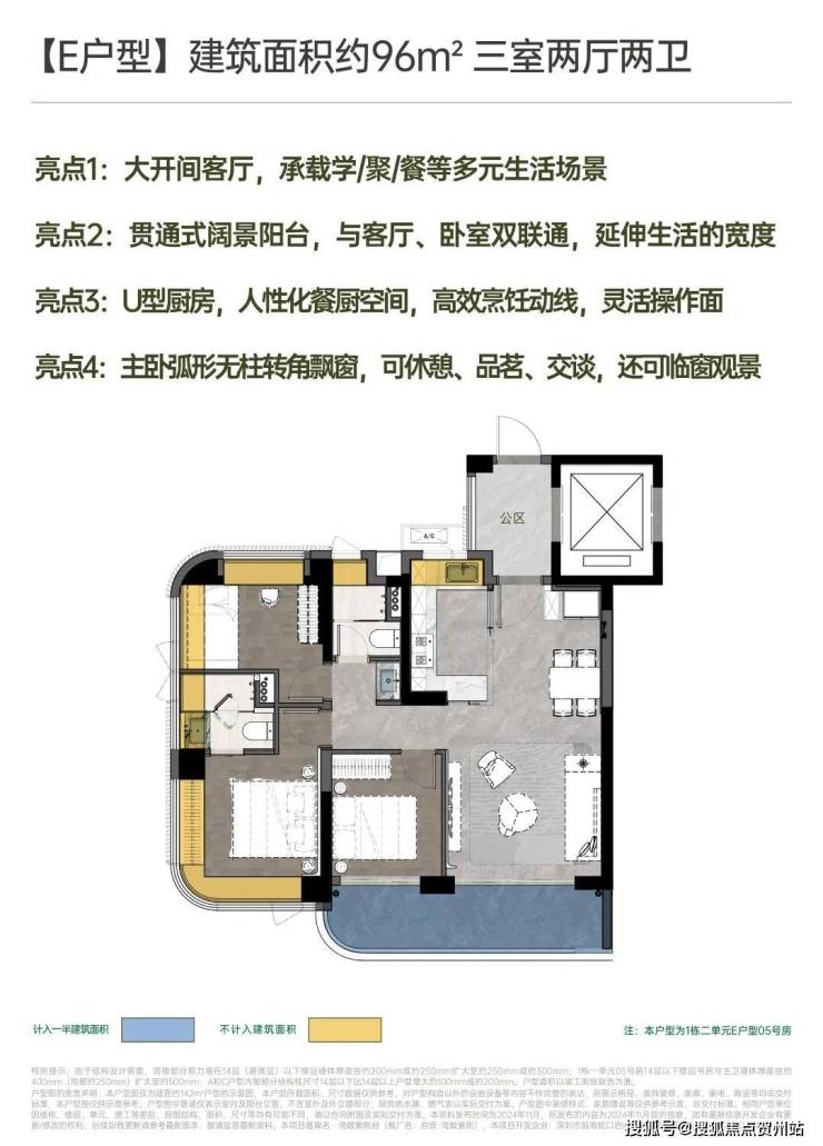空间拓展:设计有 270° 弧形无柱大尺度飘窗、大宽厅及大阳台,最大化拓展实用空间,满足家庭多元生活需求;