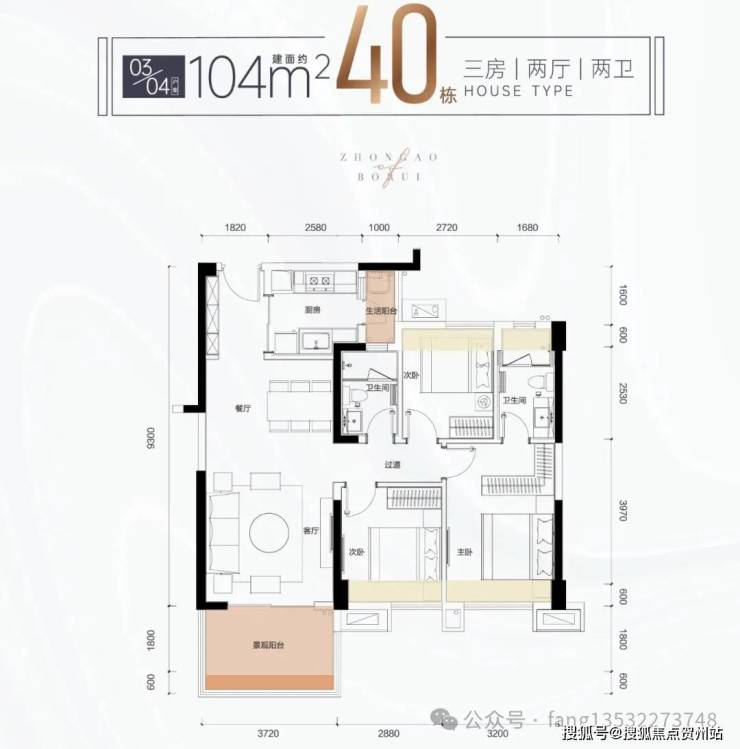 户型面积:40 / 41栋 104㎡(朝南) 118㎡(南北)