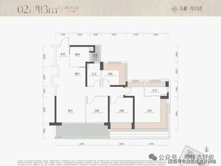 户型为113㎡四房114四房和139㎡五房约290套,2栋100米内30层住宅,2梯5户,其中主力为113㎡四房,整体以朝南及西南为主,有两套朝东北面向金众。