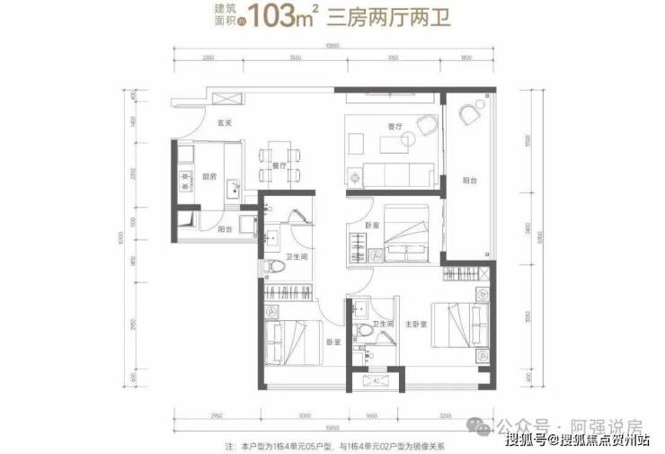 103㎡3房2卫:采用经典竖厅设计,客厅开间达3.5米,LDKB一体化布局,空间通透开阔。阳台直连次卧,6米长大阳台(约11㎡),二字型厨房设计,预留冰箱卡槽位,配备3.24㎡生活阳台。三个卧室面积为,主卧:15.13㎡、次卧:10.5㎡-7.71㎡。得房率92.3%。02户型朝西、05户型朝东(可能会有地铁-龙岗大道的噪音干扰,配置3层玻璃窗户隔音,一定程度上缓解噪音问题)