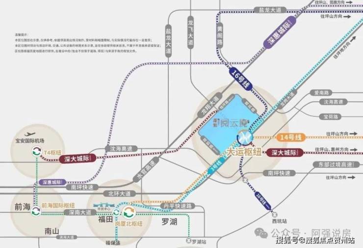 东部最大大运交通枢纽站上盖物业,汇聚了3-14-16号线,以及33号线(深大城际),地下室与地铁站厅直连