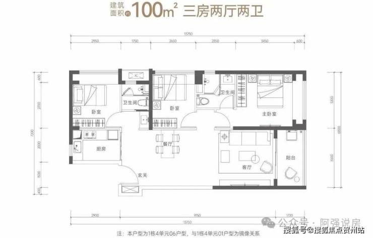 100㎡3房2卫:进门设有入户玄关,客厅开间达3.5米,LDKB一体化设计,动静分区明显。L型厨房设计,操作动线合理。三个卧室面积为,主卧:15.17㎡,次卧:9.73㎡-8.74㎡,得房率约为87.51%。01户型朝西,06户型朝东(可能会有地铁-龙岗大道的噪音干扰,配置3层玻璃窗户隔音,一定程度上缓解噪音问题)