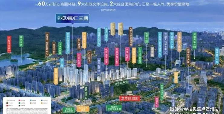 观澜,龙华行政中心,与红山商业中心、老政商贸中心形成龙华三大中心;