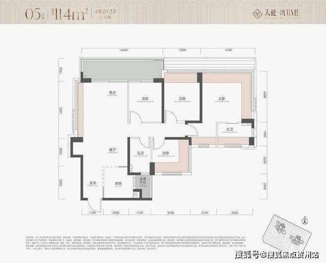 这个户型设计比较亮点的是餐客厅都能出阳台,而不是单边客厅出阳台。由于户型核心筒本身就外延了,不太受楼体遮挡也有充足的景观。对于115㎡户型来说,能够让整个客厅和阳台拥有同样的开间,可以把厅的开阔感做出来。