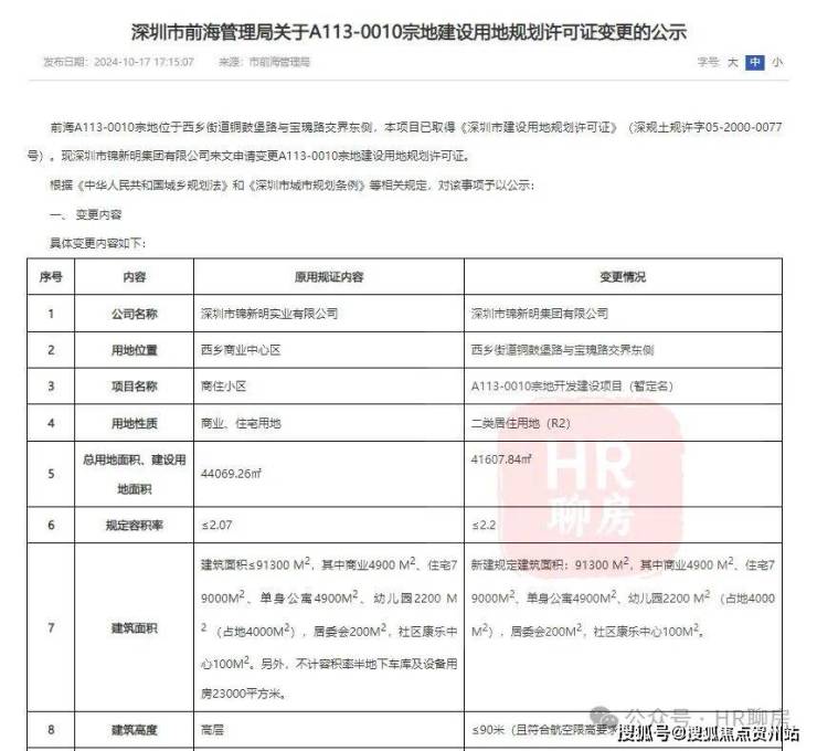 此外,项目临近地铁11号线的碧海湾站,百度测算的步行距离约在500米左右,步行8分钟可达。项目已于去年12月开工建设,预计将在12月底入市,将提供约700套海景住宅。其地段价值虽然不及宝中,但是近几年随着旁边的企鹅岛的崛起,一直热度很高,碧海新盘项目同样值得期待。宝安碧海A113-0010宗地,开发商为深圳市锦新明集团有限公司,该地块此前由商业、住宅用地调整为二类居住用地。