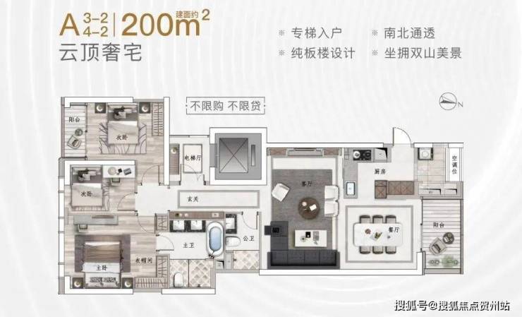 160-220㎡ 2-3+1房(专梯入户);