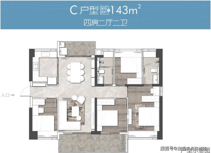 (4)143㎡三房两卫,折后单价8.5万-9万,折后总价1215-1286万;