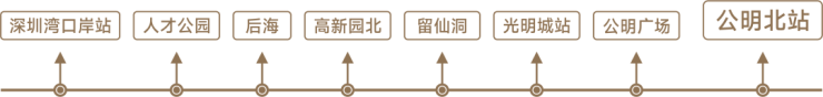项目距13号线二期(北延)公明北站直线距离约200米,4站达公明广场,可换乘6号线通达宝安/光明/龙华/罗湖/福田