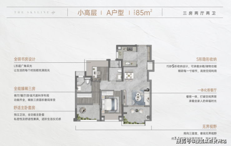约85㎡小高层,全明方正三房