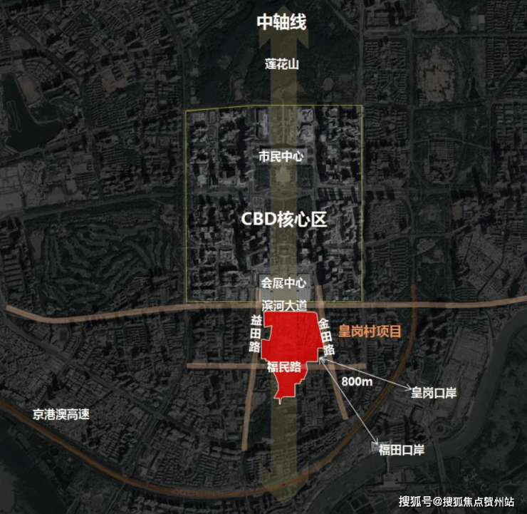 皇岗村城市更新总建面约201万㎡,由卓越与皇岗强强联合开发,承载历史融合新生,将打造成世界级城市典范综合体项目。项目位于深圳中轴之上,北接莲花山公园和城市CBD,南至深圳河对望香港,是深圳城市地标轴线的重要一环。