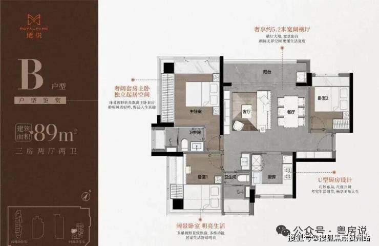 B户型:1栋1单07户型(西北向),双龙宝珠户型,起居室互不打扰,适合生活作息有差异的家人,看向宝安中医院和后面的老旧小区