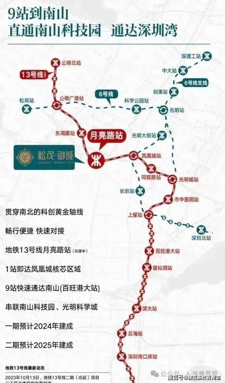 目前距离在建的13号地铁线“月亮路站”约400米,3站到光明城站,5站到石岩上屋站,计划在2025年通车运营。