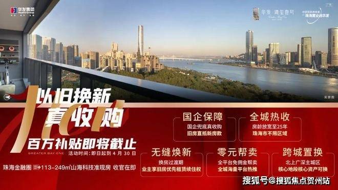 其中珠海全域置换不限地段,房龄放宽至25年,这意味着城区的“老年楼梯房”,也能直接抵扣华发·湾玺壹号新房款。