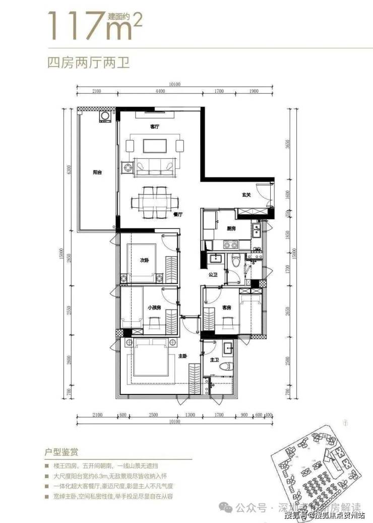 ■116㎡南北通4房2卫:116平享130平空间感/L型大阳台