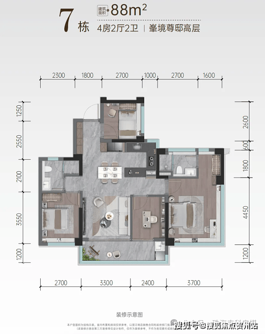 户型与得房率:主力户型 88㎡三房、99㎡四房(高层四代宅),129-143㎡四房(墅质洋房),均带精装交付。高层得房率约 110%-114%(99㎡实得约 112㎡),洋房约 112%(129㎡实得约 144㎡),空中庭院、阳台等高拓展空间,LDKB 厅一体化,空间感远超传统户型。