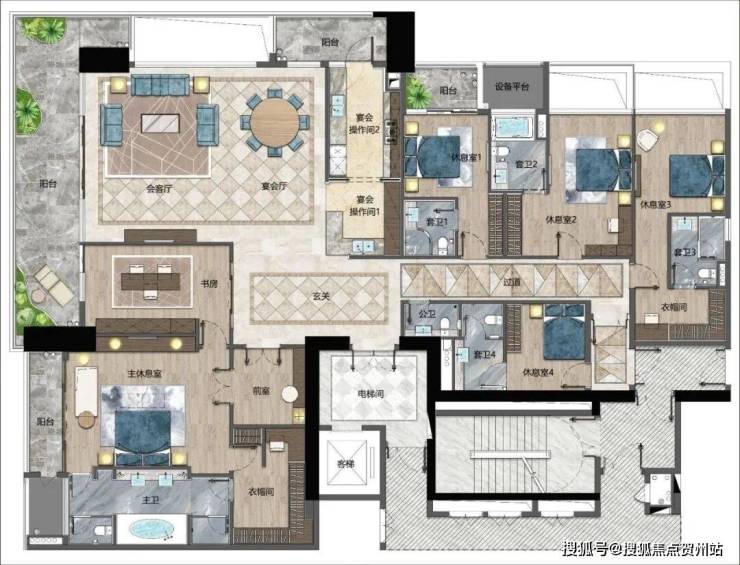 大平层室内无梁无柱、无承重墙,260-838㎡的空间可任由业主发挥创意;
