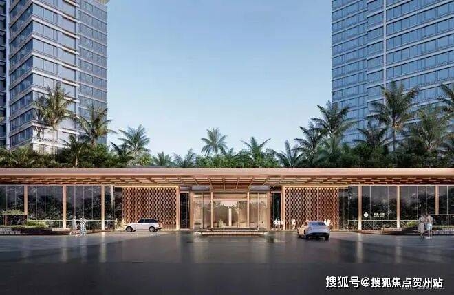 ①酒店式环岛门庭:无雨落客,仪式感归家门庭,约70米超长奢阔延展面,约7米高门阙,气度非凡仪式感满满。