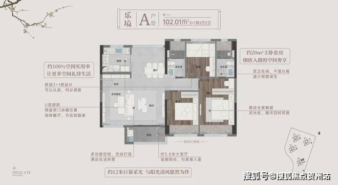 又如建面约102㎡3+1房2厅近100%使用率,实际上享受到的相当于建面约120㎡户型的空间体验,改善优选。