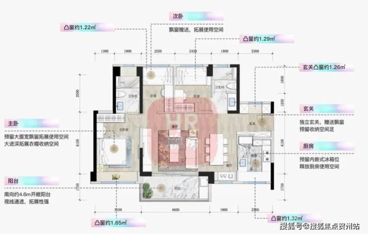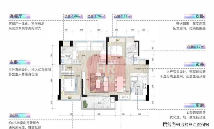 整体户型方正实用,多飘窗利用,79%超高使用率;