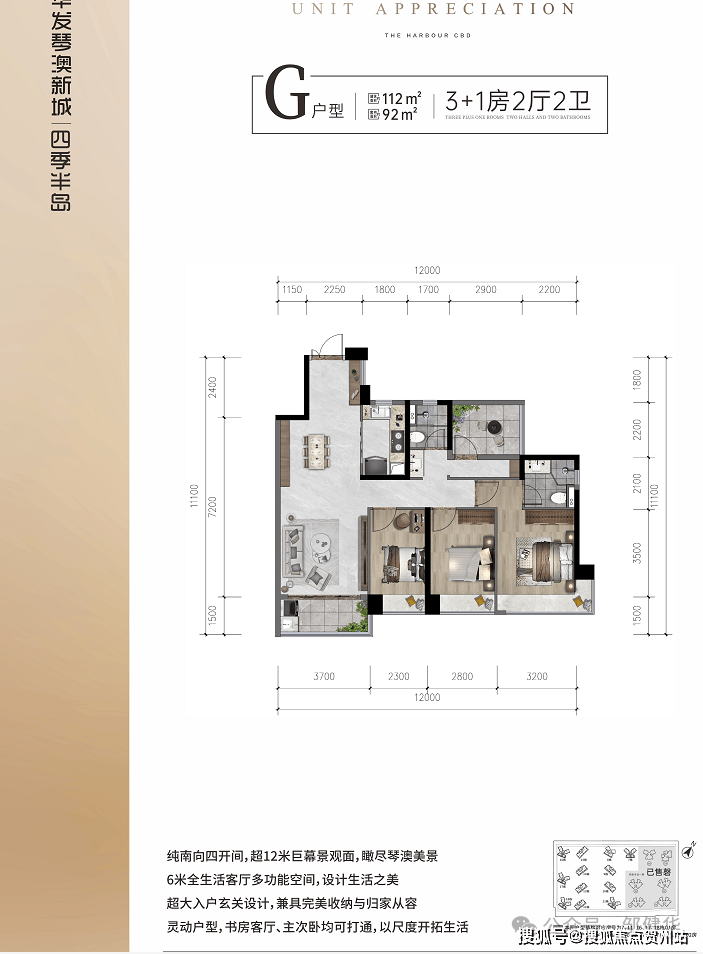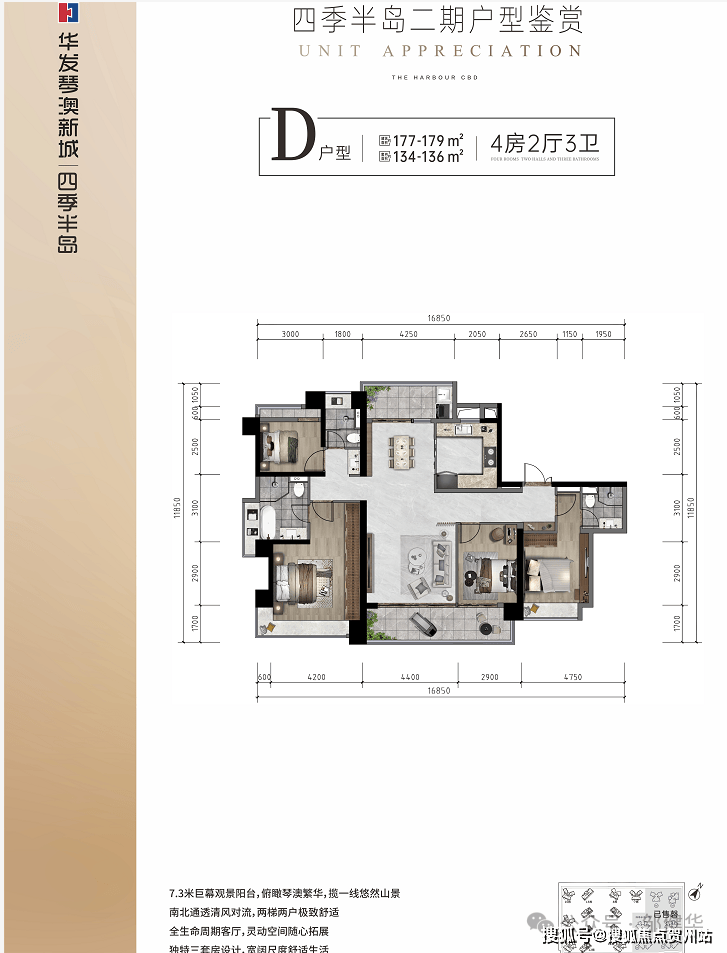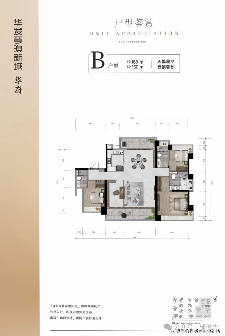 湾区西岸罕见CBD醇熟大城,超9000户业主信心之选;享海陆空立体交通、千亿配套环伺;荣获2020年珠海唯一上榜、全国单盘销售NO.17,2021年1-10月珠海网签量第一名,2021年1-10月全国单盘销售额NO.8。