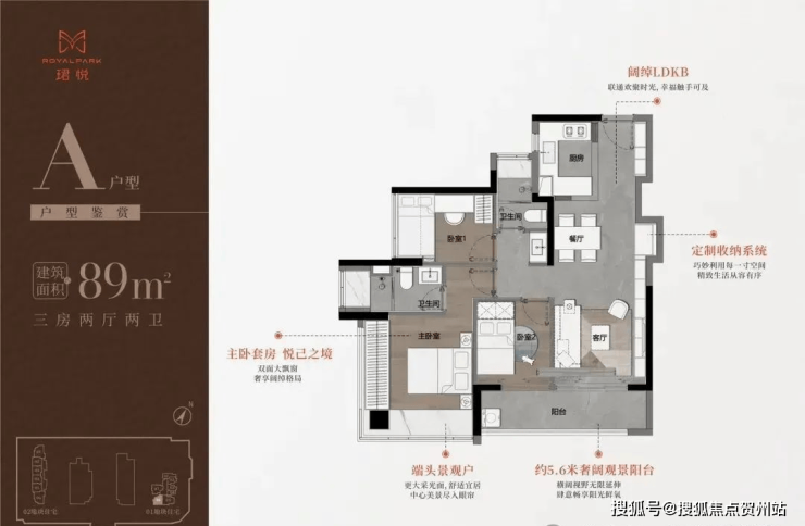 89㎡三房折后总价:608-686万