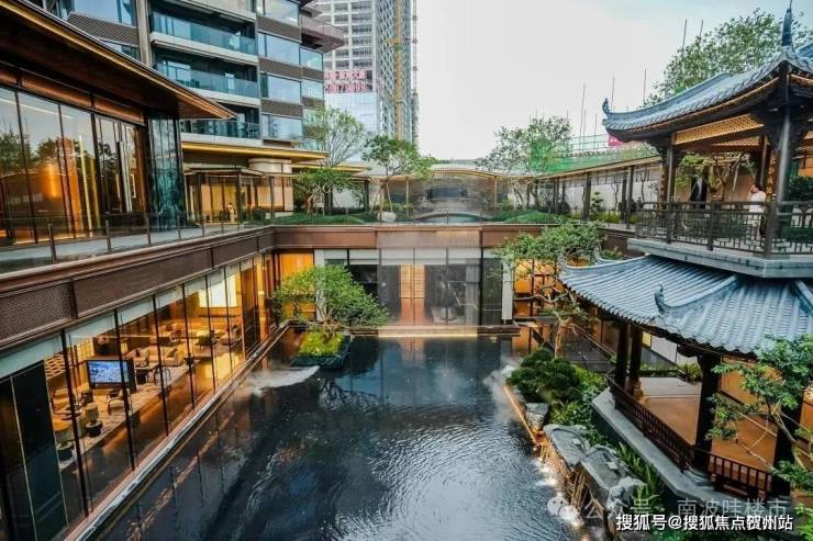 项目摒弃市面常见的围合式布局,以《千里江山图》的意境与岭南四大名园的风雅为底蕴,营筑立体化岭南园林。