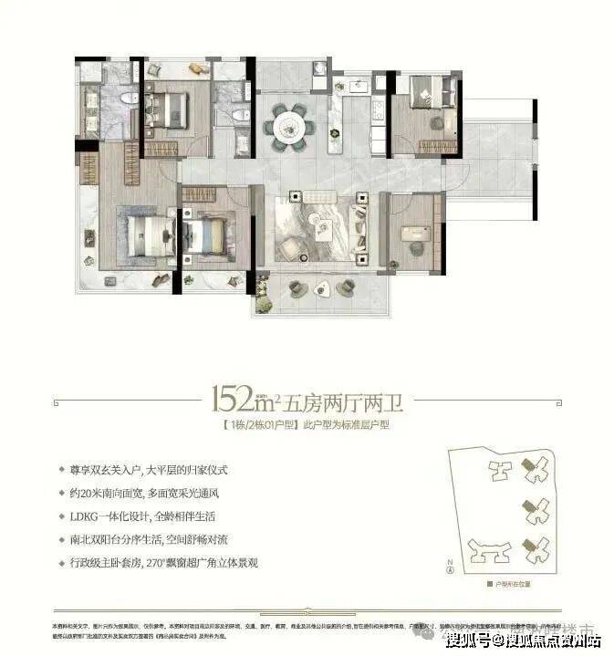 而建面约152㎡板房则更阔绰,实现南北双阳台+约20米超大面宽+独立玄关+行政级套房,尺度感可以媲美180+㎡户型。