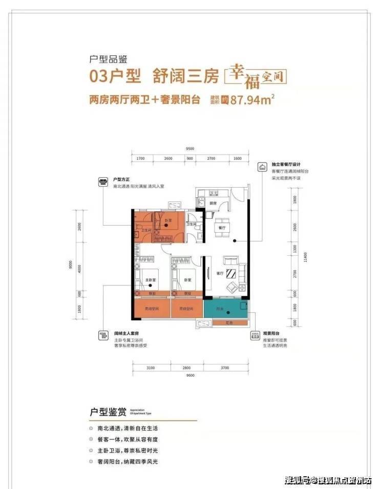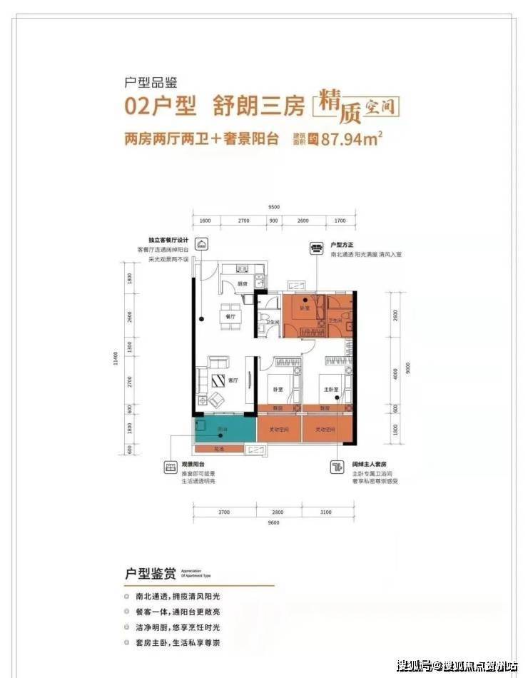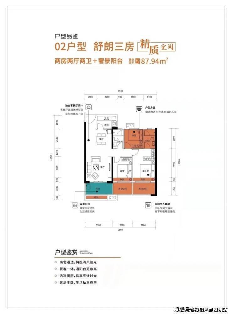 建面約88㎡,兩房兩廳兩衛+奢景陽臺