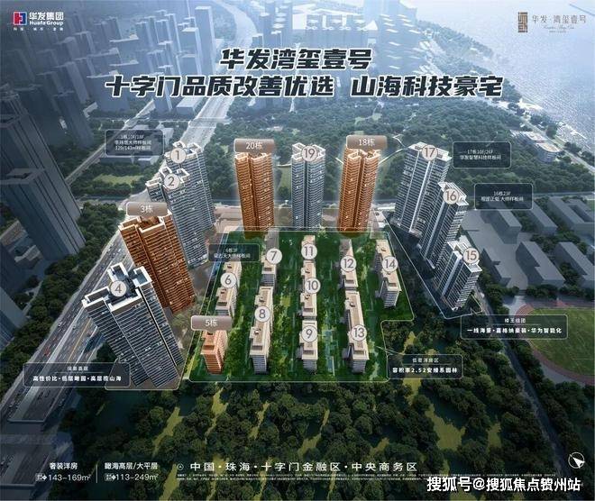 项目整体包含10栋8-10F低密洋房、7栋阔景山海高层、3栋瞰海大平层,共20栋楼。是琴澳滨海CBD最后一块可开发的纯住宅用地,产品为建面113-246㎡四至五房产品,均为高品质精装修交付
