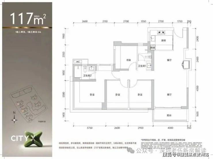 建面约108㎡4房2卫,是陪伴三代同堂/多孩家庭成长的户型。