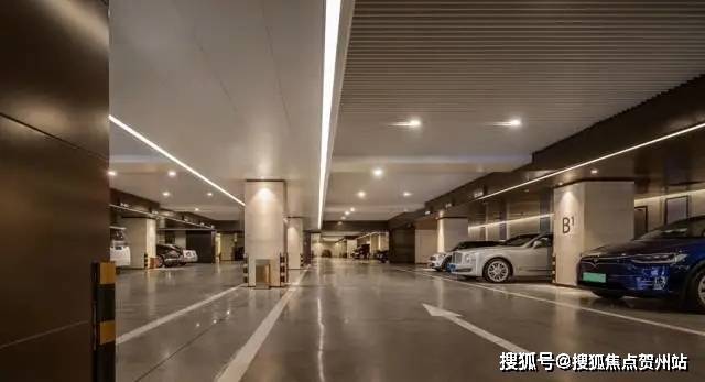 车库色调主要以香槟色为主,通过对行车通道与停车区域的色彩对比处理室内空间关系;贯穿车展简洁大气的处理手法,以线条勾勒、切割的手法来丰富里面内容,从而形成别具特色的视觉效果。